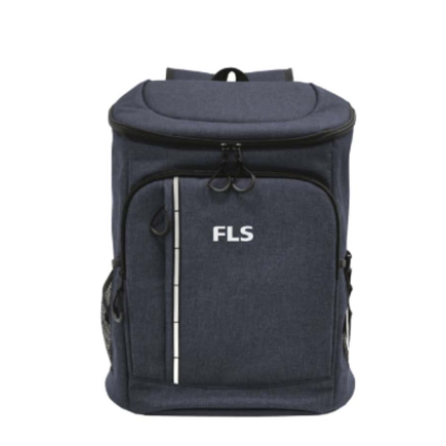 Capacidad 18 litros aprox. Poliéster Wulong 300D + Interior forrado en PEVA color plata con relleno de espuma de PE. Mochila cooler. Compartimento principal con cierre en la parte superior. Compartimento frontal con cierre, bolsillo interno de red con cierre y bolsillo externo vertical con cierre y banda reflectante. Dos bolsillos laterales de red multipropósito. Incluye destapador de botellas de acero inoxidable (6,3 x 3,3 cm) extraíble. Correas regulables acolchadas. Cierres metálicos. Tiradores de cierre plásticos en forma de U de color negro.